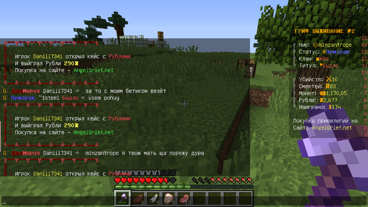 m1nzantrope Posted June 30, 2023 Share Posted June 30, 2023 1. Ваш m1nzantrope 2. Daniil7341 нарушитель. 3. Он пишет в чат про свой инвентарь, я отвечу "vsem pohuy" дальше вы видите на скрине что он мне ответил. 4. 2 гриф. 5. Доказательства (Скриншот/Видео) Link to comment Share on other sites More sharing options...