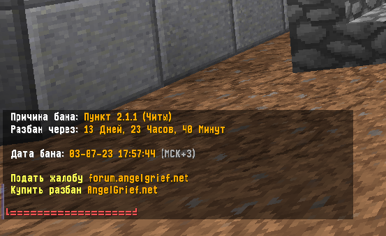 LUCHIKTOPCHIK Posted July 3, 2023 Share Posted July 3, 2023 Ваша жалоба отклонена, жалоба не актуальна. Отклонена Причина отказа: вас забанил другой человек Объяснение ситуации: Тема будет закрыта после данного сообщения Приятной игры на сервере AngelMine vk - @nezloyluchik ds - LUCHIKST#6099 Luchik penit Link to comment Share on other sites More sharing options...