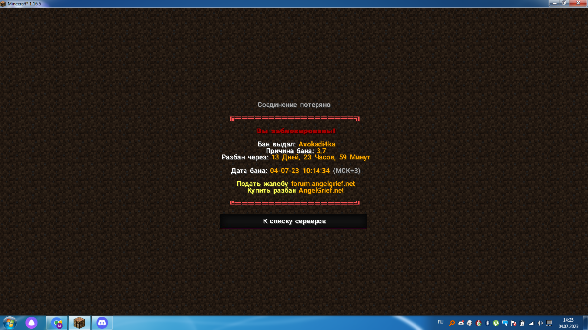 syskin Posted July 4, 2023 Share Posted July 4, 2023 1.D3adL1neRs 2.Avokadi4ka 3.мы пехались с тимейтами по приколу у меня 1.16.5 у меня баги с водой я когда в неё иду у меня жёстко флагает я ушёл когда был у меня флаг и авокадик меня забанил или вызвал меня на проверку читов жаловался анти чит иза воды. Link to comment Share on other sites More sharing options...