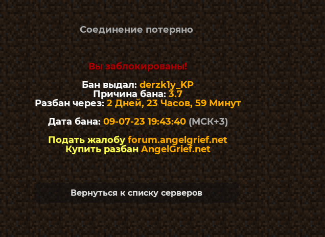 TheHappy Posted July 10, 2023 Share Posted July 10, 2023 Ваша жалоба на рассмотрении, мы разбираемся в ситуации. На рассмотрении Тема будет закрыта после данного сообщения Приятной игры на сервере AngelMine vk: 3ebraa ds: happy4ina AngelMine Link to comment Share on other sites More sharing options...