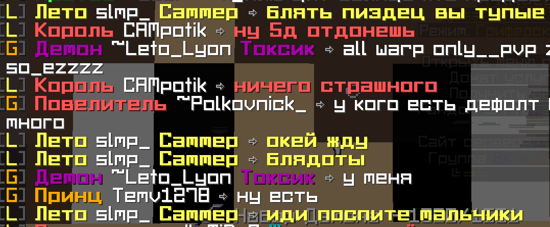 i4eknuTb Posted July 11, 2023 Share Posted July 11, 2023 1.CAMpotik 2.slmp_ 3.Мы грифирили на варпе,стояли ждали людей,залетел тип с Донатом лето,и обиделся,и начал упоминать родню,что и видно на скриншоте,также оскал меня и моего тимейта! 4.2-гриф 5. Link to comment Share on other sites More sharing options...