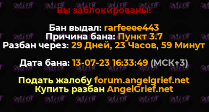 REELS Posted July 13, 2023 Share Posted July 13, 2023 1.Cacalhg 2.rarfeeee443 3. пэхались на варпе убили повика и моего тима вызвали на прову и сразу бан если что в пункте 1 написан его ник. 4.2гриф 5. Link to comment Share on other sites More sharing options...