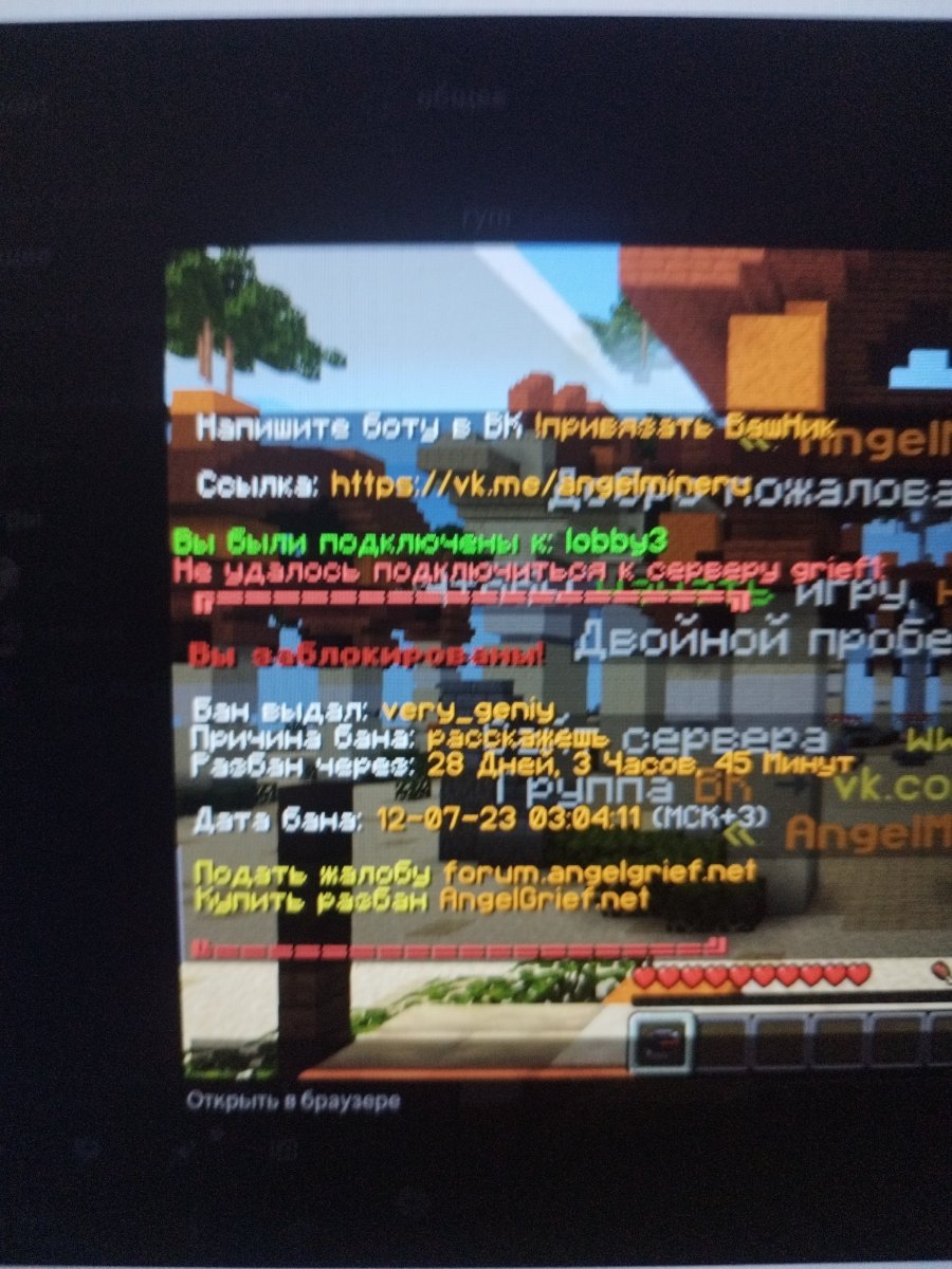Vigril_Morton Posted July 13, 2023 Share Posted July 13, 2023 Ваш Vigril_Morton 2. very_geniy 3. Играл на сервере и написал что каждый второй игрок это читер и меня забанили 4. Сервер на котором произошла ситуация. 1 гриф 5. Доказательства (Скриншот/Видео). Link to comment Share on other sites More sharing options...