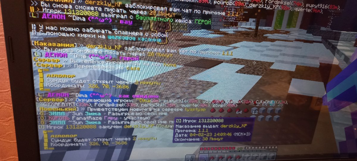 rttr2 Posted February 4, 2023 Share Posted February 4, 2023 1) мой ник rttr2 2) ник нарушителя derzk1y_KP 3) общаюсь с челом на спавне и прилетает мут 4) гриф 2 5) ниже Link to comment Share on other sites More sharing options...
