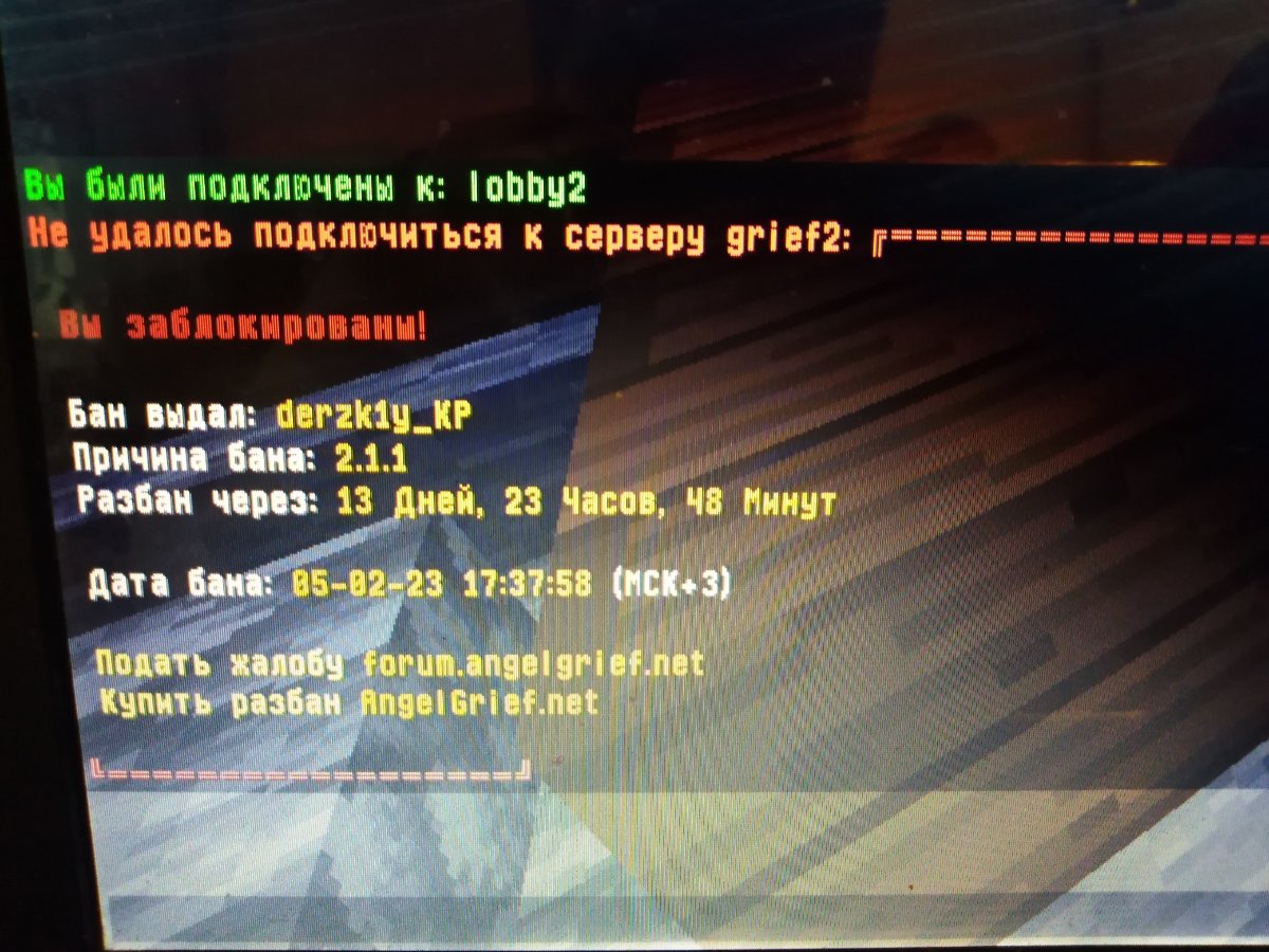 Просто Артём Posted February 5, 2023 Share Posted February 5, 2023 MelkiyKrot 2. derzk1y_KP 3. Я только что подал заявку на хелпера решил поиграть с того аккаунта с которого я подовал зашел на 2 гриф купил себе шнапс и пошёль в кит фри на варп там был люцифер который не умеет пвп а я на донате принц умел пвп и тут я с ним начинаю драться и примерно через 3-4 минуты меня банить модератор я был в шоке от того что меня забанили прошу разбанить меня 4. 2 гриферский режим 5 Link to comment Share on other sites More sharing options...