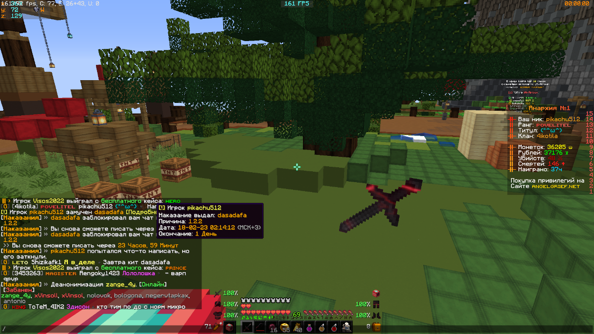 dasadafa Posted February 17, 2023 Share Posted February 17, 2023 Здраствуйте уважаемый игрок, я тот самый администратор который кинул на вас форму на бан чата. Начнём с того что, я ошибся причиной при выдачи наказания, за что очень сожалею. Вы нарушили пункт 1.2.2. Цитата 1.2.2 Запрещено оскорбительное выражение к: 1) Серверу 2) Любой работе или личности администрации/команды проекта 3) частям сервера: (Античит, Спавн, Пвп арену и т.д.) Наказание: Блокировка аккаунта или Блокировка чата от 1 дня до перманентного бана. (от степени нарушения) еперь про сам бан чата. От меня, вы написали моему коллеге "logitech__kp" цитирую "Что ты хуй несёшь?" меня затронуло как вы обращаетесь с моим коллегой. За что я и выдал вам бан чата. Ожидайте ответ от старшей администрации. Приятной игры на сервере AngelMine! Link to comment Share on other sites More sharing options...