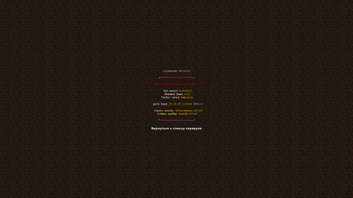 11moren11 Posted February 25, 2023 Share Posted February 25, 2023 Ваша жалоба отклонена, жалоба не актуальна. Отклонена Причина отказа: Я вас перебанил на 7 дней за тим с ним Тема будет закрыта после данного сообщения Приятной игры на сервере AngelMine Link to comment Share on other sites More sharing options...