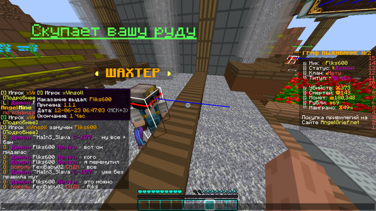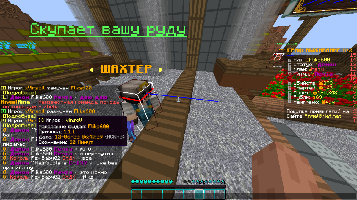 LUCHIKTOPCHIK Posted June 12, 2023 Share Posted June 12, 2023 Ваша жалоба одобрена, игрок понесет наказание. Одобрено Тема будет закрыта после данного сообщения Приятной игры на сервере AngelMine vk - @nezloyluchik ds - LUCHIKST#6099 Luchik penit Link to comment Share on other sites More sharing options...