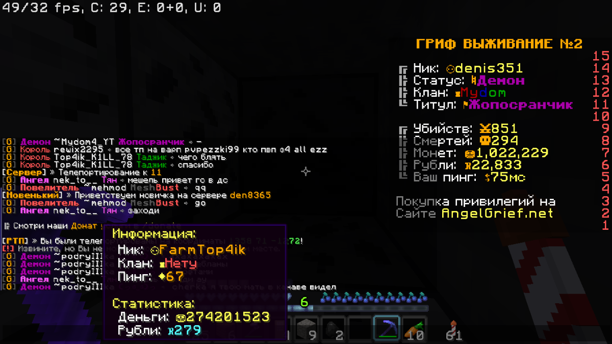 denis351 Posted June 18, 2023 Share Posted June 18, 2023 1.denis351 2.FarmTop4ik 3. 1.1.7 4. 2 grief 5. Mydom4 Discord: @miniaiuckq Link to comment Share on other sites More sharing options...